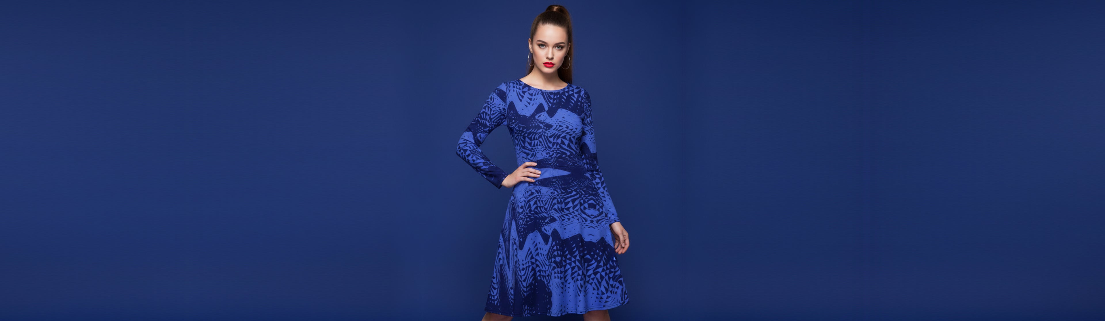- Fabric composition in the EU: 96% polyester, 4% spandex. Fabric composition in the US: 93% polyester, 7% spandex. Fabric weight in the EU: 6.34 oz./yd.² (215 g/m²). Fabric weight in the US: 7.08 oz./yd.² (240 g/m²). Premium knit mid-weight jersey fabric. Midi length. Long sleeves. Side pockets. Boat neckline. Fitted on the waist. Flared bottom part. Optional inside label in the left pocket. Fabric is OEKO-TEX 100 standard certified